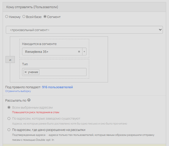 6. Проверить сегмент чтобы были те кто имеют доступ к тренингу их ссылки